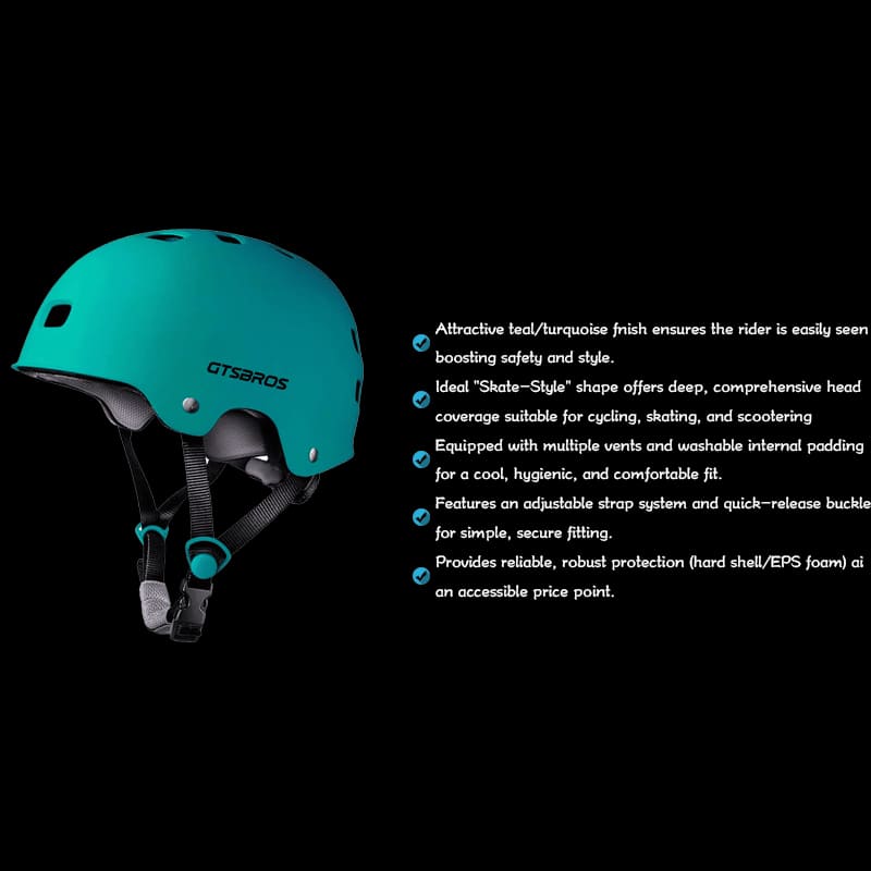 Ideal "Skate-Style" shape offers deep, comprehensive head coverage suitable for cycling, skating, and scootering.