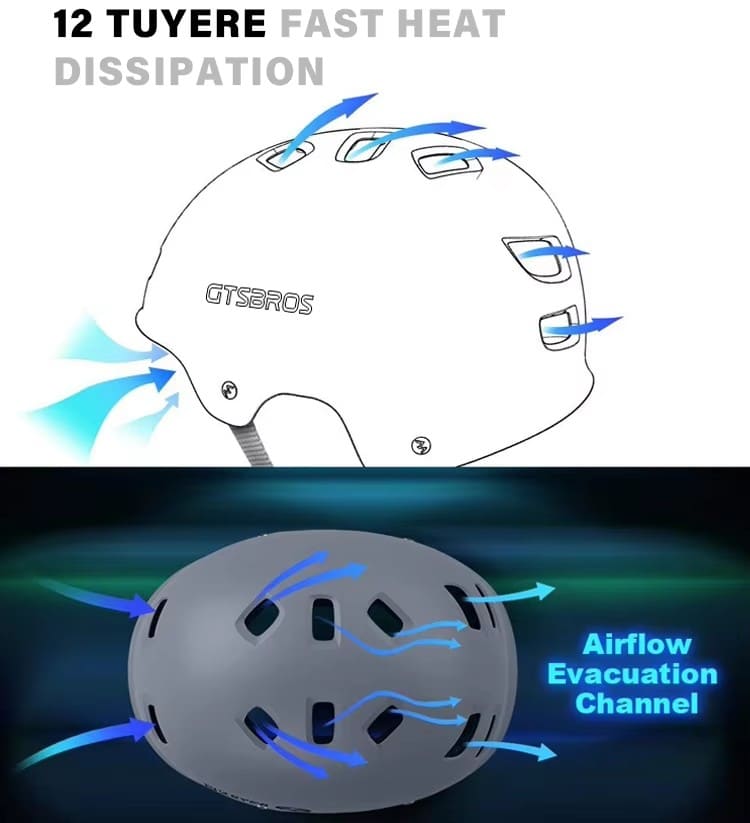 Engineered with 12 strategically positioned tuyeres (air vents) that create an efficient airflow channel system for rapid heat dissipation. This design ensures effective evacuation of hot air and maintains optimal cooling during intense activities.