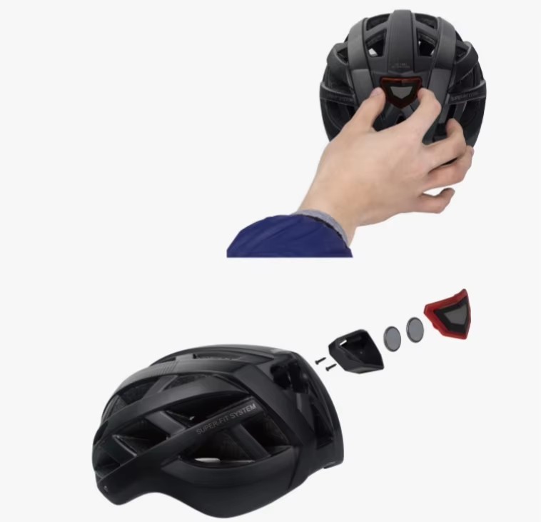 • Integrated LED Tail Light: This helmet features a built-in LED tail light for enhanced visibility and safety during low-light or night riding conditions.